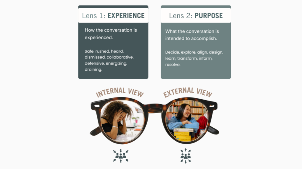 The Dual Lens Framework helps leaders hold two perspectives at once……what the conversation is trying to achieve and how people are experiencing it.